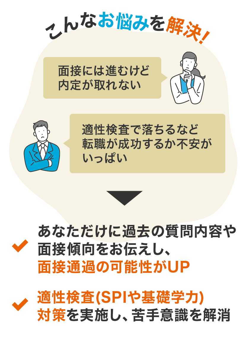 一部の転職エージェントでは、独自の仕組みとして 企業へ事前にあなたを推薦してくれるサービス や、 職務適性をチェックできる検査を行っているところもあります。