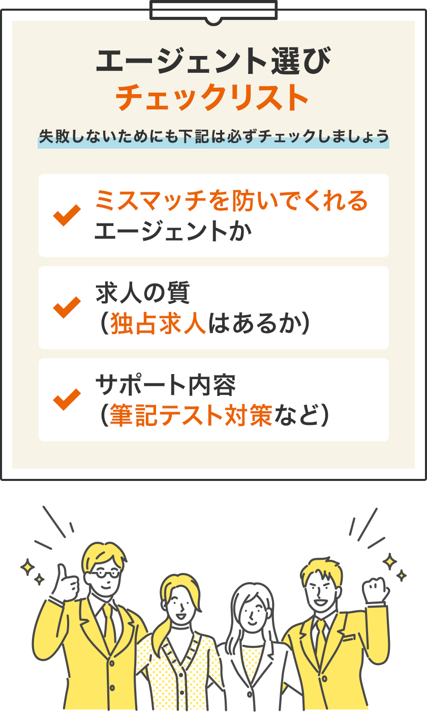 求人数の多さだけでなく、独占求人やエージェントが企業としっかり連携しているかも確認しましょう!