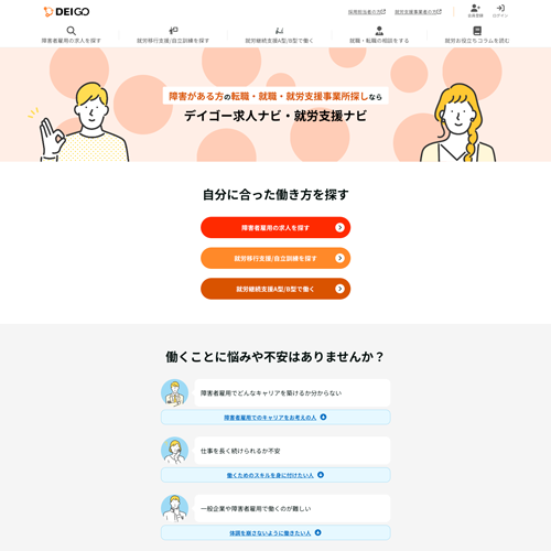 姉妹サービスであるデイゴー就労支援ナビと連携し、一般就労が難しい障がい者の方にも、就労支援施設を含む多様な選択肢を用意